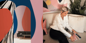 Lois O’Hara is a Brighton-based artist and designer who creates joyful hand-painted murals, and illustrations. Her signature aesthetic uses wavy shapes and patterns in bold colour combinations, and she has applied this to all kinds of products, from water bottles to buses, exercise studio interiors to window displays, and now wallcoverings! She has partnered with a number of local and international brands already, including Habitat, Sure, Pantone, Shaw Contract, Patterns, and Brighton & Hove Council.