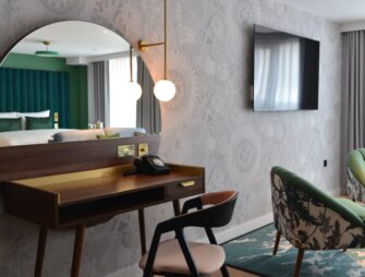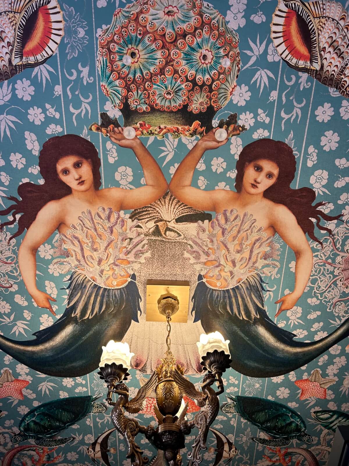 “As a hotel that champions local creatives past and present it was important for me to showcase Carrie’s Neely’s artwork. Placing the murals on the ceiling was a playful way to ensure guests are immersed in the characters the rooms are based on. In this case, the mermaids for Thomas Andrews, designer of the Titanic, and cherubs for Valentine Rennie the harpist “